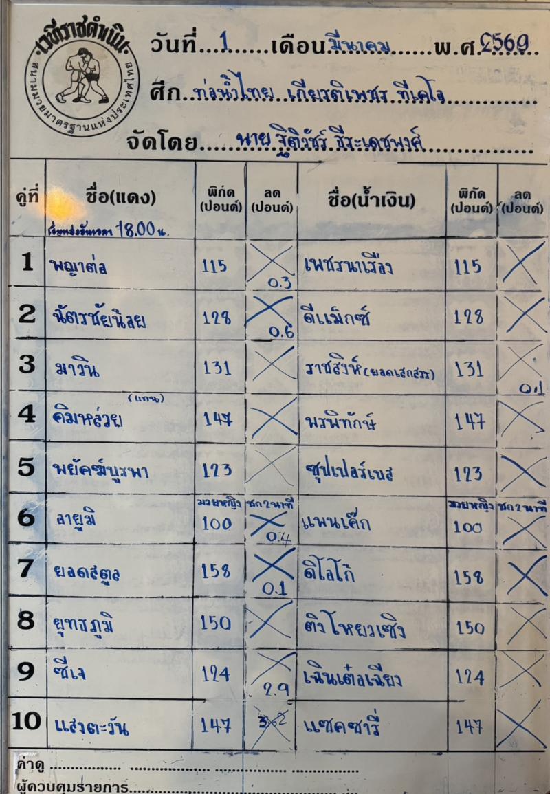 มวยวันนี้ 01/03/2569