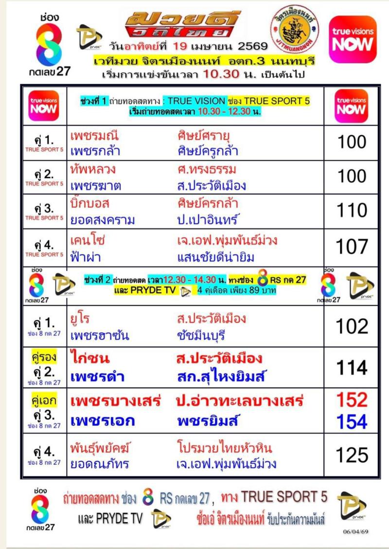 | # ศึกจิตรเมืองนนท์ ช่วงที่ 2 17/04/2569 |