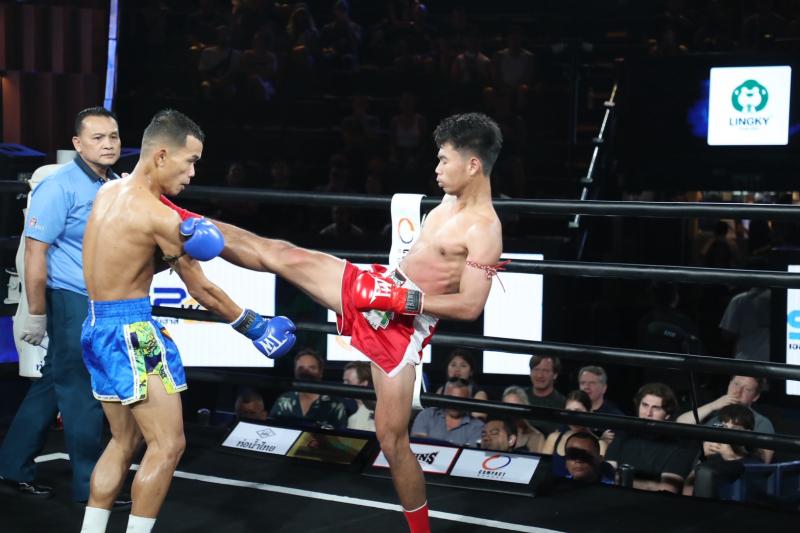 การต่อสู้ | มวยขวาเปิดเกมสาดแข้งคว้าคอขวางหน้าแทงต่อยหมัดฟันศอกบู๊ดุดันปลายแข็งแกร่งกว่า | - |