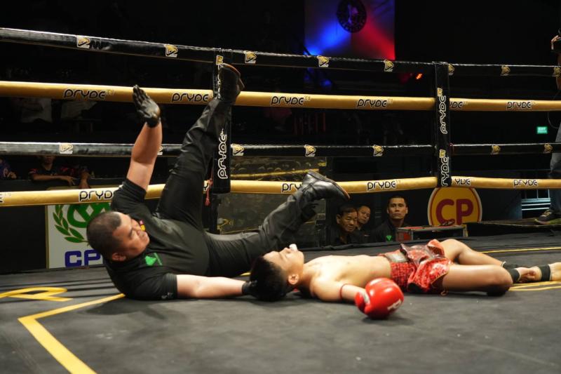 | การต่อสู้ | มวยซ้ายเข่าในขวางหน้าล็อกรัดตีเหนียวแน่น | มวยซ้ายสูงยาวใหญ่ฝีมือครบเครื่อง |